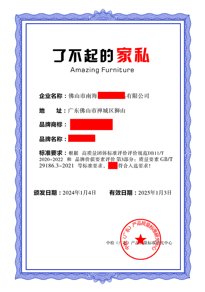 《了不起的家私》同時根據國際標準、國家標準、行業標準等作為基本依據,由行業專家團,深入企業及品牌,開展嚴格調研測評,對符合要求的企業,頒發授予“了不起的家私”相關榮譽證書。