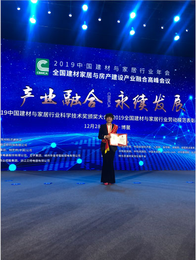 2019年12月28日,2019年度全國建材與家居行業勞動模范評選活動在海南博鰲亞洲論壇會議中心舉辦,愛麗舍華董事長王秀娟獲“勞動模范”稱號。