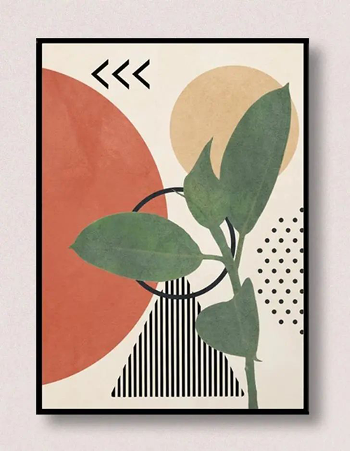 一個傾斜的書架靠在墻上,邊上用一個能在 Amazon 就能買到的30、40一幅的城市掛畫。