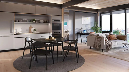 有意思的是,Juno將自己定義為一家綜合產品公司,結合世界一流的設計和大量木材建筑系統,在城市中創造優雅、創新和可持續的住宅。Siegel 與聯合創始人 Jonathan Scherr 和總部位于紐約的 Ennead Architects 合作,開發了一個由大約 33 個組件組成的模塊化系統,這些組件可以組裝成各種不同的住宅區。他們的目標是建造更平易近人、更容易實現、價格更親民的高質量住宅。