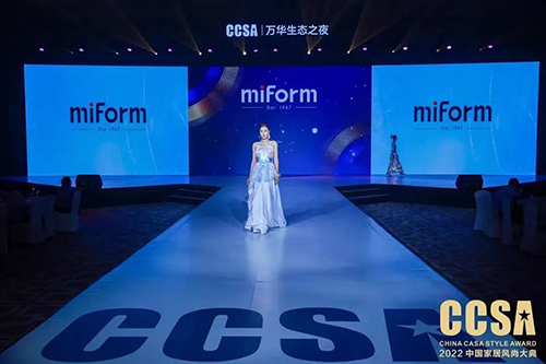 高舉高打是必須的。歐派6月6日才官宣miform誕生,7月就馬不停蹄送出了一份厚重的滿月大禮:在由中國建博會(廣州)、高定俱樂部、羅浮宮家居廣州藝術中心主辦的第七屆中國家居風尚大典CCSA中,miform獲得“2022中國家居風尚大典中國高定TOP10品牌”稱號。