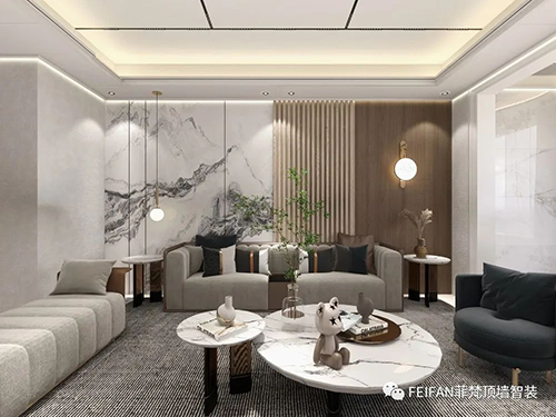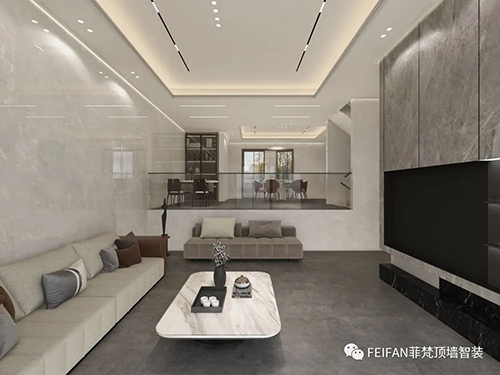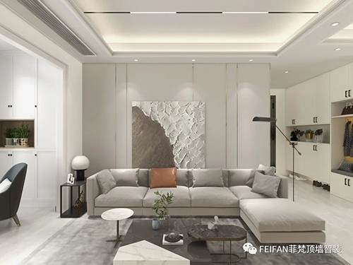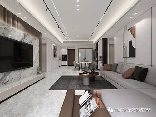 頂墻整裝產品全部采用模塊化安裝,不需要刮膩子、刷漆、石膏找平等各種復雜的工序,直接安裝在毛坯房墻面,兩個安裝師傅即可完成,普通家裝一周內即可完工,所以能夠大大縮減裝修的時間,節省裝修費用。
