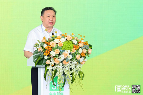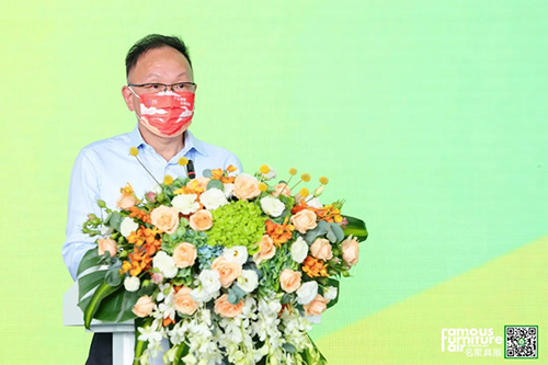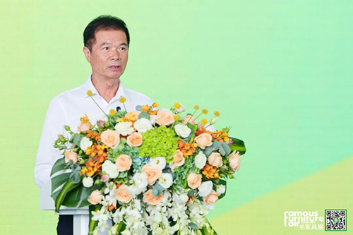 ▲中國國際商會家居建材產業委員會、中國家居品牌聯合會常委執行主席、東莞名家具俱樂部理事長、華輝家居集團董事長林炳輝致辭