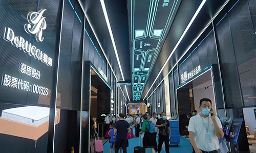 厚街家具企業現場相當“吸粉”。作為東莞首家上市家具企業,慕思備受矚目,一開幕就成為了“主角”。乘上市之勢,慕思大手筆打造了“巨無霸”展廳,攜帶意簡、藍奢、凱銳、凱悅四大新系列,以及經典系列重磅亮相,充分展現了厚街家具企業的風采與魅力。