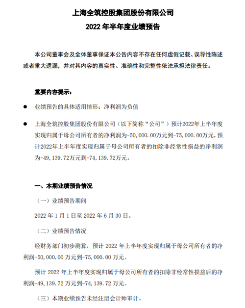 全筑股份(SH 603030)7月14日晚間發布業績預告,預計2022年上半年度實現歸屬于母公司所有者的凈利潤-5億元到-7.5億元。 手持大量出險房企應收款項卻無法收回,成為裝飾企業虧損的重要原因。其中,全筑股份、廣田集團受恒大“暴雷”影響,今年上半年的利潤仍為虧損。