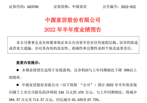 亞振家居(603389.SH)7月14日晚間發布業績預告,預計公司2022年半年度實現歸屬于母公司所有者的凈利潤-5500萬元到-6100萬元。業績變動主要原因是,報告期內,受到新冠疫情多點散發影響,公司營業收入與去年同期相比下降25%左右,而相應成本費用同比下降幅度小于收入下降幅度。 11中源家居