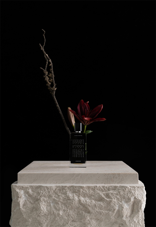 延續香料表字母的排版設計,在純白的石膏杯上做了凸起,看起來有點像“盲文”,也像是解謎香氛的神秘暗語。