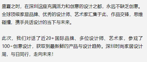 今年深圳家具展將揭示四個設計趨勢與啟發;2022深圳家居藝術盛筵值得回味 |