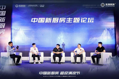 三大品牌聯合 共筑中國新廚房 發布會現場,奧維云網總裁郭梅德先生、友邦吊頂副總經理吳偉江先生、志邦家居市場總經理胡成陽先生、老板電器營銷總經理王濤先生、紅星美凱龍政務商場總經理蔣國棟先生,從各個維度對“中國新廚房”這一話題進行了深入探討。