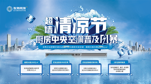 冷立方普及 買就送8999元廚房中央空調 隨著“中國新廚房 超級清涼節”聯合營銷活動的啟動,友邦在全國范圍內開展的超級清涼節活動也同步拉開序幕,期間至友邦全國專賣店選購兩衛的暖立方浴室暖空調X5,就送8999元冷立方廚房中央空調,更有蜂窩大板吊頂僅需299元/㎡,讓消費者得到真正的實惠,花更少的錢、裝更好的家。