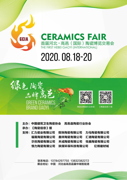 8月18日至20日,首屆河北?高邑(國際)陶瓷博覽交易會將在河北省高邑縣冀中南智能港隆重舉行。本次陶博會由中國建筑衛生陶瓷協會、高邑縣陶瓷行業協會主辦,陶瓷信息報社承辦,匯力瓷業有限公司、煜珠陶瓷有限公司、力馬陶瓷有限公司、福隆陶瓷有限公司、鑫祥陶瓷有限公司、匯德陶瓷有限公司、爾優陶瓷有限公司、禾成陶瓷有限公司、悅鑫陶瓷有限公司、恒力陶瓷有限公司、陜煤環保科技有限公司、億博建材城贊助支持。