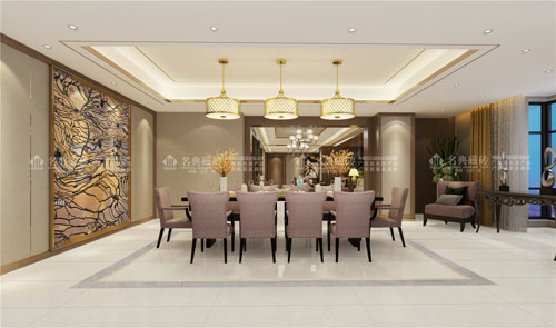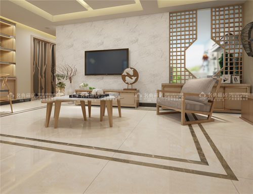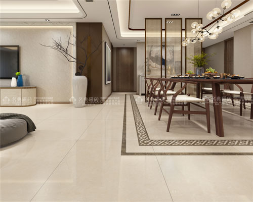 新中式家具主要體現細、輕、圓潤,因此地面不能花俏,簡單的波打線點綴或者大面積鋪貼反而更能體現中式家具的韻味。