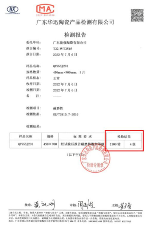 經過一頓“現代酷刑”的測試,該片屬能強臻品隕石系列的瓷磚毫發無損,順利通關,配上專業權威機構的測試結果的加持,可見能強臻品隕石確實能扛得住歲月的考驗!