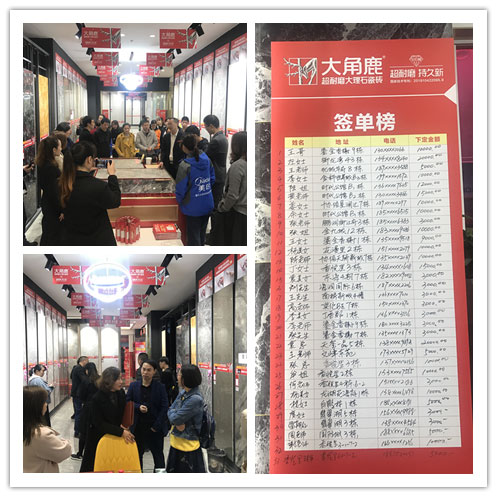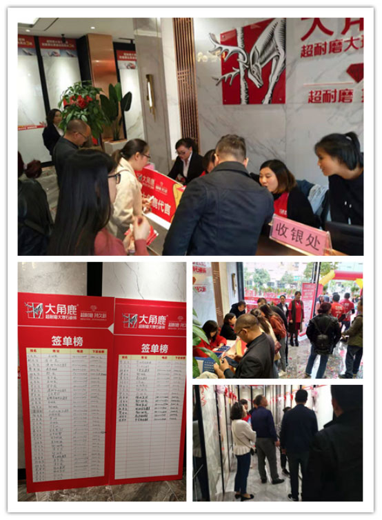 11月3日-11月17日,大角鹿6家專賣店陸續盛大開業,活動現場總收定金超過200萬。同時,全國超耐磨萬人PK大賽6站點也如期開賽,讓全國各地消費者親自體驗了“大角鹿,超耐磨、持久新”并引發搶購熱潮。