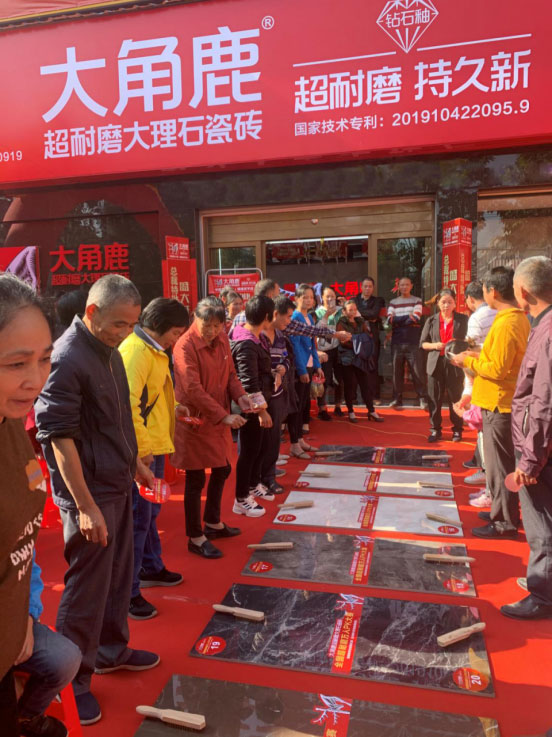 大角鹿品質過硬不怕挑戰,所到之處必然刮起一股“超耐磨”熱潮,讓全國各地消費者拿起鋼刷,用力摩擦大角鹿超耐磨大理石瓷磚,親自體驗和見證每一片大角鹿超耐磨大理石瓷磚耐磨度是普通瓷磚的3倍。