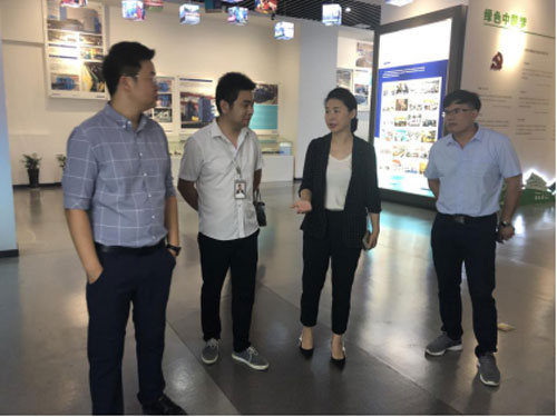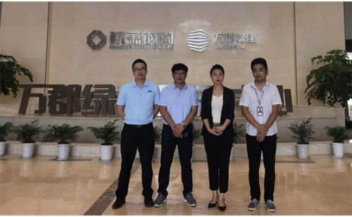 張董事長在萬郡綠建領導陪同下參觀杭蕭鋼構展廳