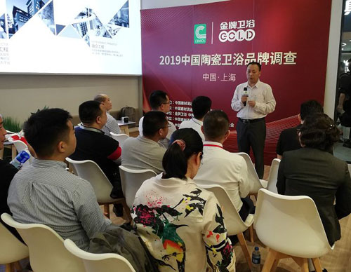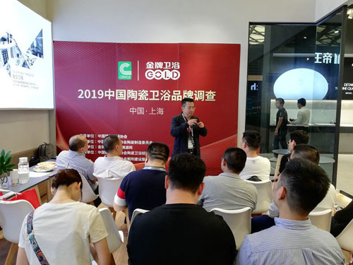 2019陶瓷衛浴品牌調查活動發布會在金牌衛浴展館如期舉行,金牌衛浴總經理曾小羚、金牌衛浴品牌經理王珊珊、衛浴界百科全書、中建協陶瓷制造委員會顧問專家林津老師、建材流通協會陶衛經銷商委員會主席兼秘書長李作奇、建材流通協會陶瓷制造委員會主席兼秘書長黃湘濤、建材流通協會廁所建設委員會副主席兼秘書長劉繼武 、 佛山市質量管理協會秘書長喻永健、潮州建筑衛生陶瓷協會秘書長張揚等多位行業大咖出席了本次活動,金牌衛浴推介重點產品,設計師與經銷商積極提問,精彩互動不斷;協會領導以及行業專家點評,行業大咖思維碰撞,引來眾多參展人員以及媒體的關注。