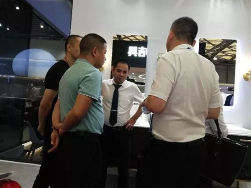 本次展會,金牌衛浴以清新、高端大氣又帶些神秘感的展館形象、簡約流暢的線條,成功吸引眾多參展人員的目光,大量國內外意向客戶紛紛前來咨詢洽談。