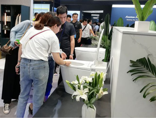 金牌衛浴展館現場人頭攢動,客流不斷,參展人員對金牌衛浴的高品質智能產品給予高度評價,眾多媒體前來參觀采訪。