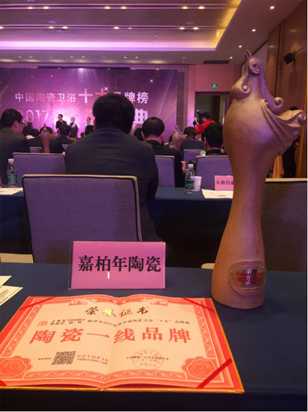嘉柏年瓷磚榮獲“陶瓷一線品牌”稱號
