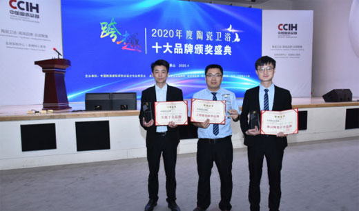 2020年4月22日,由民族建筑研究會設計專業委員會主辦,陶瓷衛浴品牌網,華南家居網共同承辦的“2020陶瓷衛浴十大品牌頒獎盛典”在陶瓷總部基地隆重舉行。