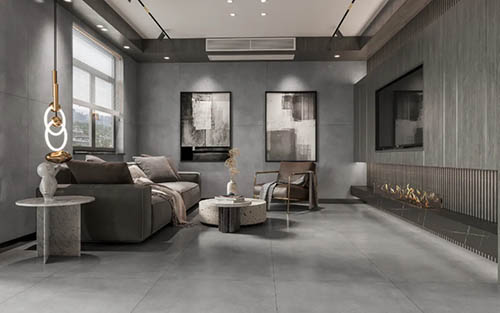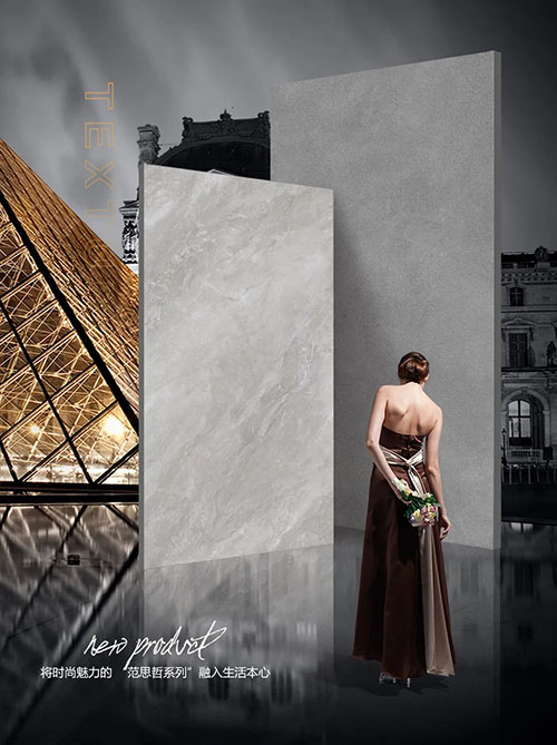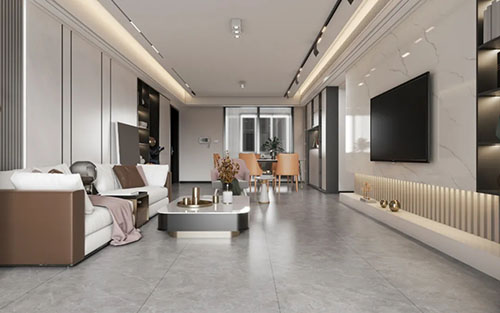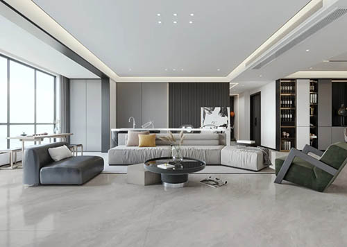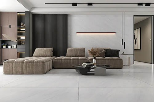 純白如雪的磚面,若隱若現的灰色漸變石紋飄動其中