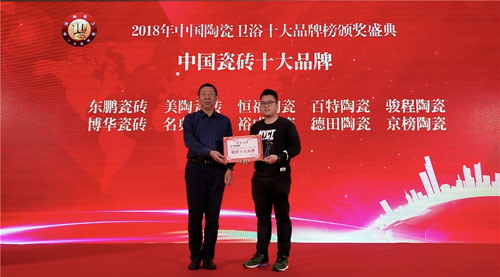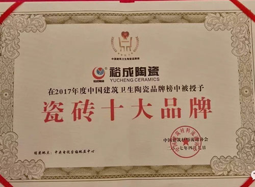 在本次頒獎典禮中,裕成陶瓷憑借扎實的品牌實力、良好的品牌口碑、優質的產品和專業的配套服務贏得了社會各界的一致好評!榮耀蟬聯了“瓷磚十大品牌”稱號!