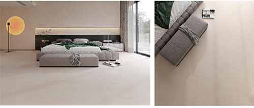 750x1500mm黃金規格,符合建筑模數,減少后期加工;墻地一體,無限視界;5-20°柔和亞光,高級質感;親膚釉工藝,精細柔拋,觸感細膩親膚。莫氏硬度高達7級,耐磨抗污;適合營造靜謐舒適的素雅空間。
