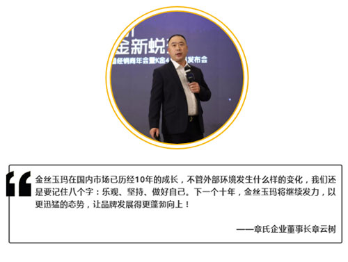 值金絲玉瑪2019全國經銷商年會之際,章氏企業董事長章云樹為一眾金絲玉瑪經銷商指明發展方向,為2019年以及未來十年的發展壯大做全面布局規劃。