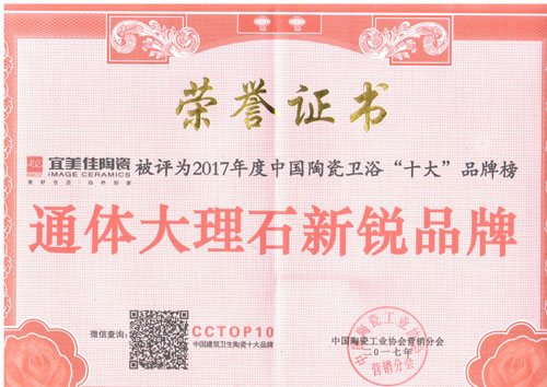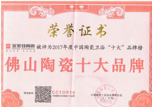 2017年4月2日,由陶瓷工業協會營銷分會主辦,陶瓷品牌網、華南家居網、華人設計師網承辦的“2017陶瓷(衛浴)十大品牌頒獎盛典”在佛山中歐國際會議中心舉行。