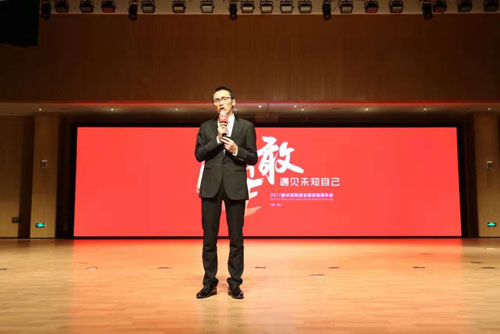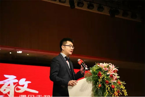 隨后,新中源陶瓷總經理霍卓威先生作《敢.年輕來戰》,他表示,“新中源陶瓷32年行業沉淀,奮勇向前,離不開所有經銷商的支持”,在未來三到五年內,將打造一個有設計感、年輕化的一線品牌,2017年,將聚焦品牌成長、客戶成長,希望在坐的經銷商以年輕來戰的豪邁氣概,以敢·遇見未知自己的執著信念,銳意進取,闊步向前,一起開創新的輝煌。