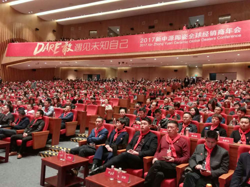 12月4日,2017新中源陶瓷全球經銷商年會“敢·遇見未知自己”在佛山中歐國際會議中心隆重舉行。新中源集團董事局主席霍熾昌、新中源陶瓷總經理霍卓威、常務副總經理陳勤顯、市場總監郭浩、設計總監袁高生、運營總監楊峻強、電商事業部總監劉若愚、新中源陶瓷各大銷售區域和事業部品牌總經理以及來自全球1600多名經銷商、媒體代表出席會議。