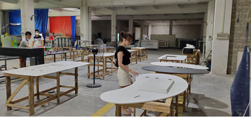 緊接著,在工作人員在指引下,記者們參觀了瑪緹巖板家居加工生產線,進一步了解瑪緹巖板家居的產品。