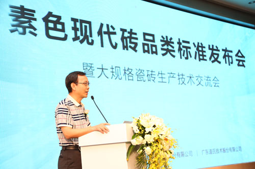 △ 廣東陶瓷行業協會秘書長陳振廣代表廣東陶瓷行業協會,對此次發布會表示高度贊賞。他認為,素色現代磚品類標準的發布是一次陶瓷生產商、大規格瓷磚生產設備制造商、瓷磚色彩技術專家聯合實現的創舉,推動行業發展步履值得行業全員參與,希望廣東陶協也能參與進標準的制定中,成為其中的一份子。