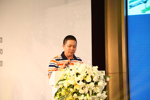 △ 廣東道氏技術股份有限公司研發部經理石教藝博士以歐文萊素色現代磚色彩研發上的難點與改進為案例,向大家進行《大規格素色現代磚生產線生產技術交流》。