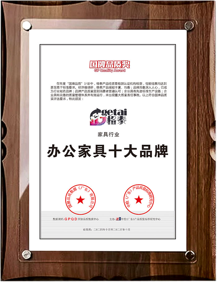 近日,格泰GETAI辦公家具榮獲“國牌品質”IP授權,并攬獲年度重量級品質權威大獎“國牌品質獎”辦公家具十大品牌。