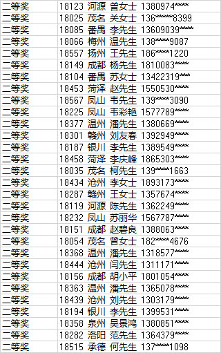 二等獎中獎名單