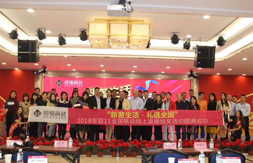 11月23日,以“新奢生活·禮遇全國”為主題的恒福瓷磚雙11全國聯動線上直播抽獎活動華麗開show!恒福瓷磚銷售副總段士波、恒福瓷磚銷售副總徐迪宇、恒福瓷磚市場部總監王艷、恒福瓷磚設計部總監錢龍、恒福瓷磚產品部總監熊宏以及來自家居行業的眾多權威媒體代表出席了本次活動,共同為恒福雙11全國聯動畫上圓滿句號!