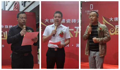 ▲左:湘鄉大唐合盛瓷磚營銷中心總經理歐陽勇致辭;中:大唐合盛瓷磚華中區銷售總監萬濤致辭;右:客戶代表致辭。
