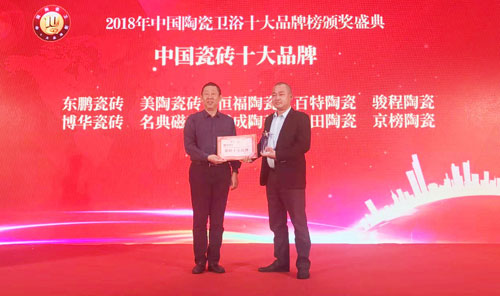 3月27日下午,2018年度“陶瓷衛浴十大品牌榜”頒獎典禮在杭州國際博覽中心成功舉行,持續近半年的“2018年度陶瓷衛浴十大品牌榜”評選隆重揭曉,德田陶瓷榮獲“瓷磚十大品牌”和“工程建設推薦品牌”稱號。