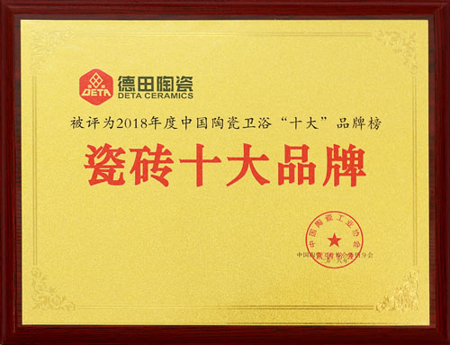 德田陶瓷多年來不斷創新,專注產品研發,以“高顏值,高品質,高性價比”深入民心。憑借強大的產品實力及良好的品牌優勢,在“2018年度陶瓷衛浴十大品牌榜”評選中脫穎而出。