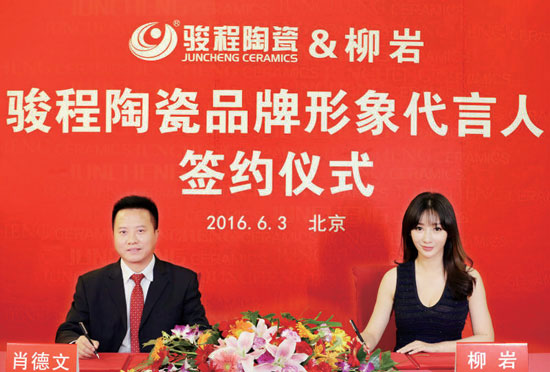 憑借11年強大的生產銷售實力,駿程陶瓷在行業中一直保持著強勁的發展勢頭。在2016年,駿程陶瓷在北京與影視綜藝主持全能明星柳巖正式簽約;同年,駿程陶瓷斥巨資在佛山華夏陶瓷博覽城打造了超豪華的多功能總部展廳,順勢推出全新的瓷拋磚、天巖、仿古磚等系列新產品,全面豐富了駿程陶瓷產品體系,獲得經銷商和合作伙伴一致的高度評價。2017年,駿程陶瓷在廣佛高速投下高炮廣告,品牌影響力得到進一步的提升。