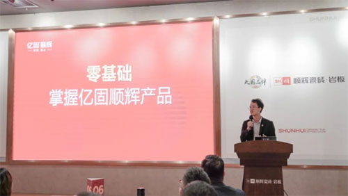2023年是億固順輝項目的關鍵之年,作為“主材+輔材”的新模式,順輝瓷磚·巖板副總經理王庭龍對億固順輝的政策支持、市場開拓提出了目標及要求。億固順輝項目執行人倫景耀則從產品介紹、鋪貼應用、專業服務等角度,為品牌人員進一步鞏固了產品知識。