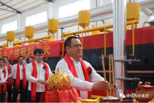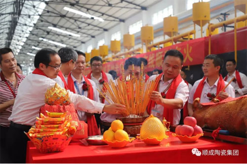 活動現場,順成陶瓷集團董事長梁有福、總裁梁德云、副總裁程達光、董事長助理兼采購總監梁惠儀、執行董事梁德鋮、明城基地生產總經理劉建新、董事長助理兼行政總經理霍建榮、三洲基地生產總經理霍德熾、三洲基地副總經理霍樹勛、董事長助理葛藤生、董事長助理張海軍、順輝巖板總經理梁榮群、明城基地燒成部經理莫衍永共同點燃窯火,開啟順成新的征程!