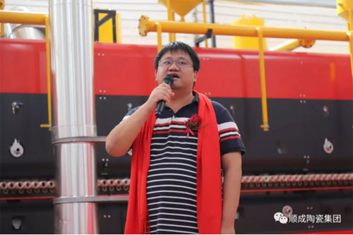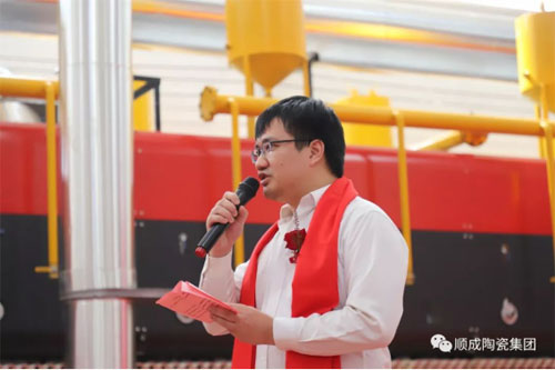 順成陶瓷集團執行董事梁德鋮在點火儀式上致辭。梁總講到,順成陶瓷集團作為大型建陶集團,率先引進首條意大利薩克米無限長連續成型大板巖板智能產線,能成功打造出平板和大磚領域的行業技術標桿性產品,為順成在該領域領先地位奠定了堅實基礎。