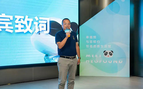 恒福瓷磚市場總監李小龍對新品的定義進行一個解讀。他指出由于當今消費群體的改變,以往的爆款產品已然不再適合當今社會潮流的趨勢。因此我們時刻研究如何滿足新一代的消費所需,從而發現利用先進的技術把自然的奇觀異景還原至產品上,讓用戶在家居空間中得以感受更多自然之美這個方向,是未來市場發展趨勢。因此我們推出了質感磚系列產品,并誕生全新恒福IP——幸福熊。