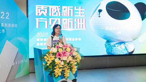 恒福瓷磚產品總監熊宏對質感磚新品的工藝進行講解。她表示面對行業一系列變化,為了迎合市場,滿足年輕消費群體對個性和時尚的追求,我們對所有產品的工藝進行改革和創新。針對市場推出了侘寂風、微水泥系列,奶油風、肌膚釉系列,幻影系列等設計師喜愛的風格產品。