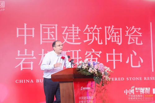 貝斯特生產基地總經理霍建榮在致辭中表示:希望中國陶瓷巖板研究中心的成立,引領和推動中國建陶高質量發展,為美好人居提供“中國高端巖板智慧解決方案”。