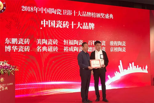 3月27日下午,2018年度“陶瓷衛浴十大品牌榜”頒獎典禮在杭州國際博覽中心成功舉行,持續近半年的“2018年度陶瓷衛浴十大品牌榜”評選隆重揭曉,京榜陶瓷榮獲“瓷磚十大品牌”稱號。