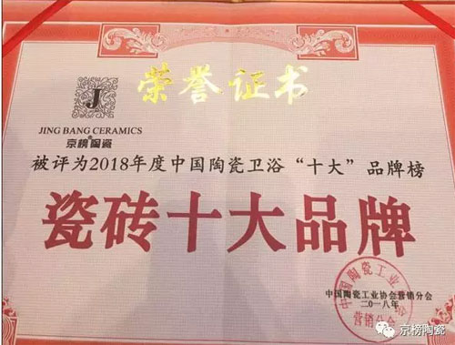 在“2018年度陶瓷衛浴十大品牌榜”評選中脫穎而出,是京榜陶瓷多年來堅持品質立本、服務為先和重口碑、鑄品牌的結果,也充分說明了市場對京榜陶瓷的認可。